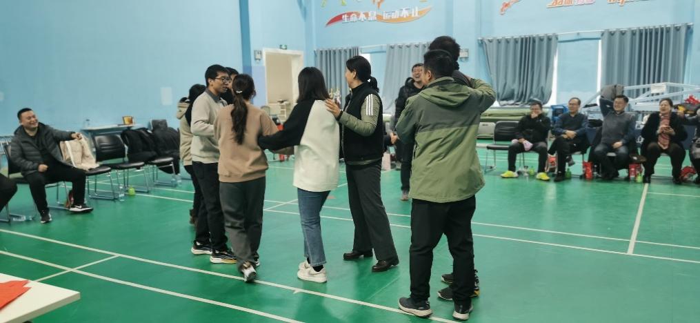 联欢活动共分两个阶段。第一阶段,数字密码、听声辨位、心有灵犀、开心抱团等游戏项目让每位老师都参与其中。异彩纷呈的游戏活动,拉近了老师们之间距离。游戏参与者幽默的表演、自然释放的童趣,让在场的每个人都开心不已,工作的疲惫、生活的烦恼在这一刻消失殆尽。