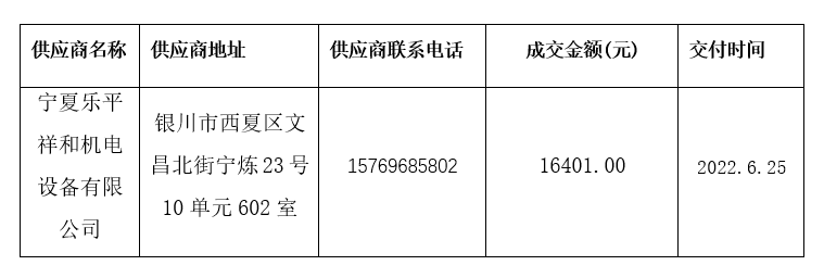 经过市场询价,宁夏乐平祥和机电设备有限公司所报的产品符合要求,且价格最低。