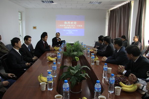 揭牌仪式之后,在校党委副书记赵利宁、组织部部长王亚勇等陪同下,上海交通大学校长张杰、副校长黄震一行到我校物理电气信息学院进行考察、座谈。