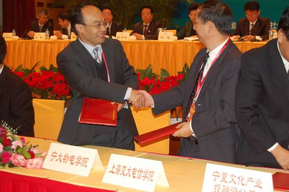 2011年9月20 日上午,成人网站 物理电气信息学院与上海交通大学电子信息与电气工程学院在银川国际饭店签订了两院合作协议.这次协议签订是借2011年中国(宁夏)引进海内外高层次人才合作洽谈会的平台举行的.我院院长李新碗教授和上海交大电信学院常务副院长毛军发教授参加了协议签署仪式. 同时,宁夏回族自治区政府还为上海交大电信学院常务副院长毛军发教授颁发了自治区特聘专家. 本次两院合作协议的签署和特聘专家的聘请是继今年9月10日上海交通大学和成人网站 对口援建十周年活动的进一步推进,标志着两校深度合作的开始.