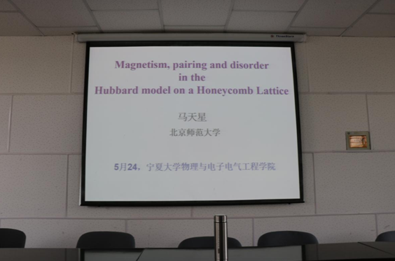 马天星教授以《Magnetism, pairing and disorder in the Hubbard model on a Honeycomb Lattice》为题,介绍了他们小组在蜂窝晶格Hubbard模型关于磁性、配对与无序研究中的发现。