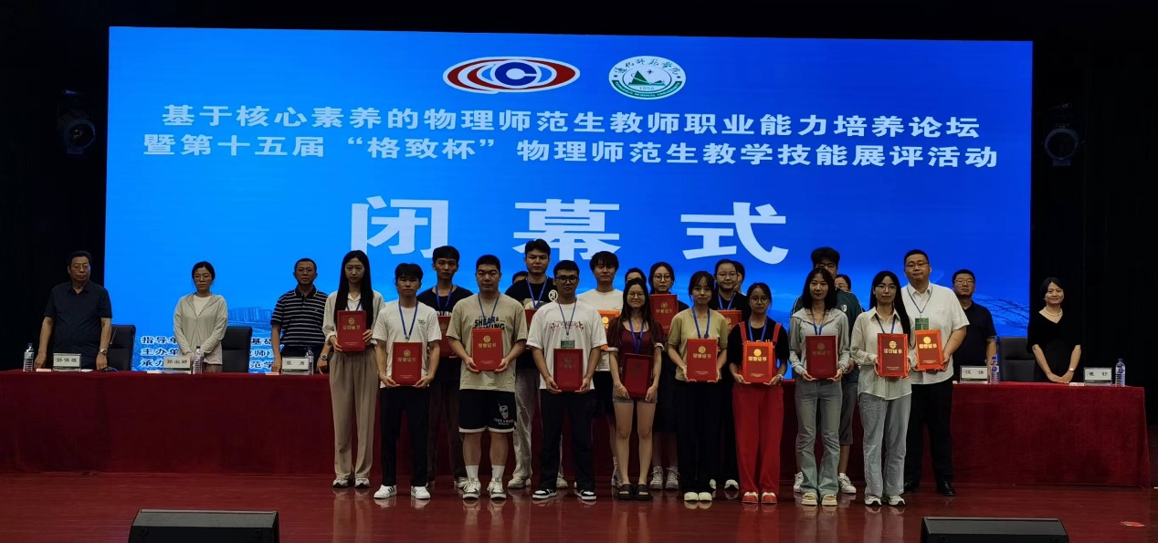 经选拔,成人网站 派出了由2021级物理学专业(师范)6名本科生和2023级学科教学(物理)14名研究生组成的参赛团队。在学院指导教师团队的督促指导下,各位同学刻苦训练,为迎战比赛做好充分的准备。通过与百余所高校参赛选手的激烈比拼,成人网站 学子捧杯而归,本科生团队获二等奖2项,三等奖4项;研究生团队获一等奖5项,二等奖3项,三等奖2项。具体获奖信息为:刘佳怡/本科组教学技能二等奖;曹宁/本科组教学技能三等奖;黄国琴/本科组教学技能三等奖;马灵娜/本科组教学技能三等奖;吴佩贤丁浩 周仁/本科组教具展示二等奖;黄国琴 刘佳怡 庄静如/本科组教具展示三等奖。李浩楠/研究生组教学技能一等奖;魏雨佳/研究生组教学技能二等奖;马玉娟/研究生组教学技能二等奖;曹家悦/研究生组教学技能二等奖;黄湑彦/研究生组教学技能三等奖;张铭雄/研究生组教学技能三等奖;王大浩 范春赟杨学荣/研究生组教具制作一等奖;马翔 黑佳李浩楠/研究生组教具制作一等奖;罗坤 王治萍马琴/研究生组教具制作一等奖;杜萍平张铭雄陈晶/研究生组教具制作一等奖。