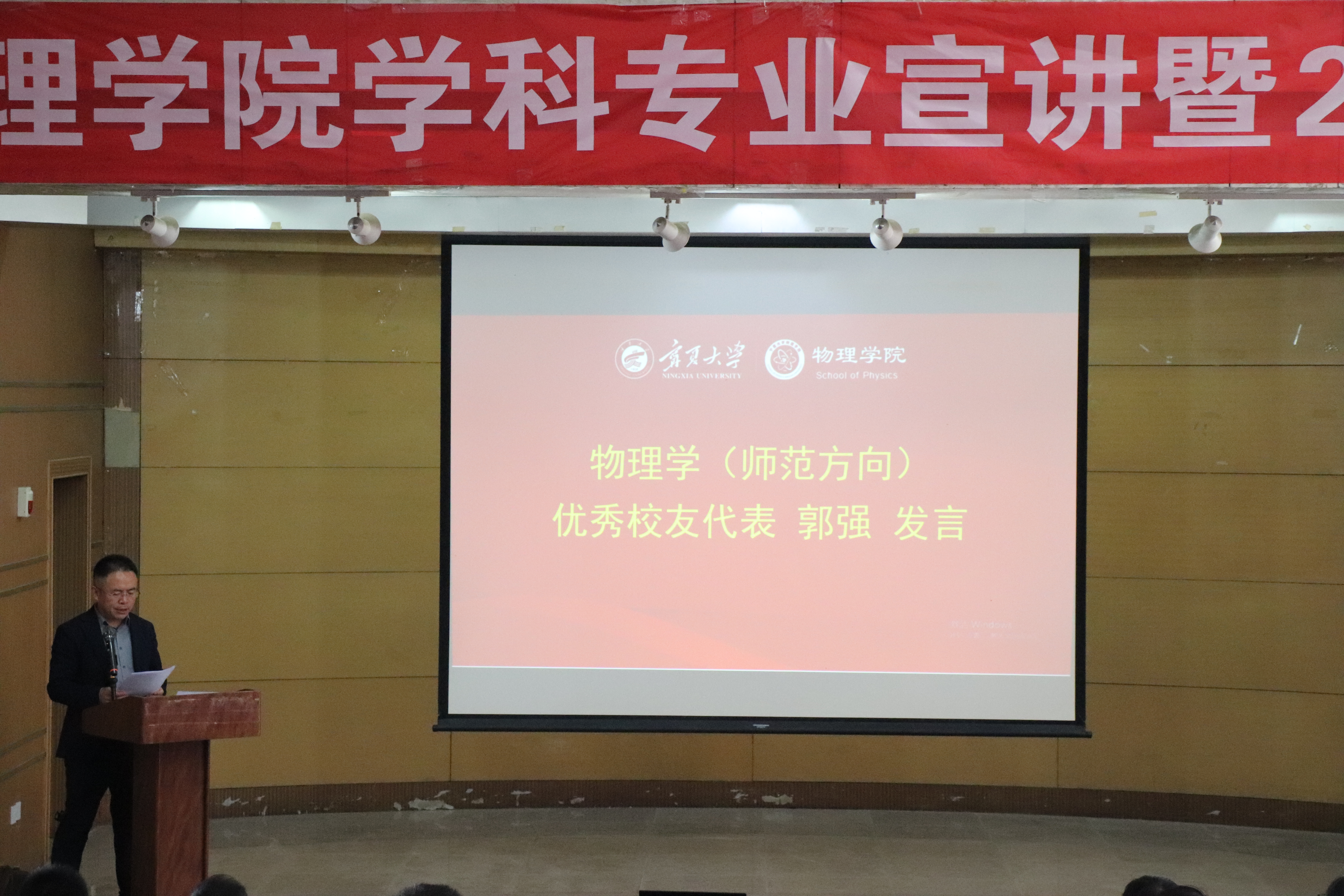物理学(师范方向)优秀校友代表、宁夏银川一中党委委员、副校长郭强,物理学(基础拔尖)优秀校友代表、中国科学院理论物理研究所助理研究员谢琼、物理学(材料物理)优秀校友代表、广东一纳科技有限公司总经理王建兴受邀发言。他们通过分享自身的成长经历,展现他们在各行各业取得的业绩,激励和引导每一位成人网站 学子传承物理人的精神,在奋斗中练就过硬本领、勇于创新创造、锤炼高尚品格、追逐青春理想,以青春奋斗之我,成就精彩人生。