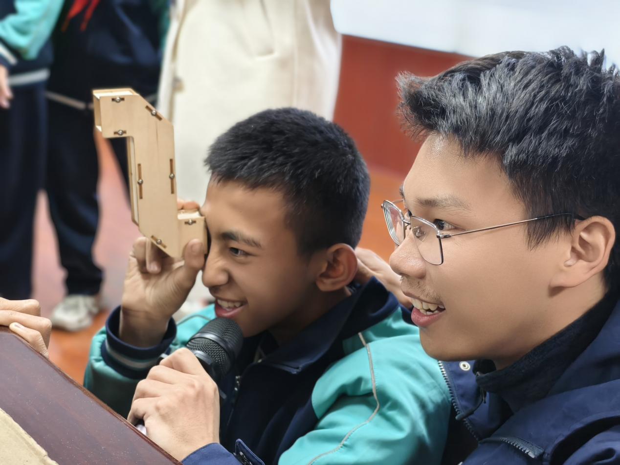 在科普活动环节,由宁夏物理学会牵头、成人网站 组建的宁夏物理微科普团队为同学们带来了一系列精彩的科学小实验。利用光的反射原理画出五角星,将图像投影在空中等;最后进行的激光照破气球实验,将光的能量以一种直观的方式展现出来。通过这一系列实验展示,同学们对光学现象有了更为深刻的认识,激发了他们对科学的浓厚兴趣。