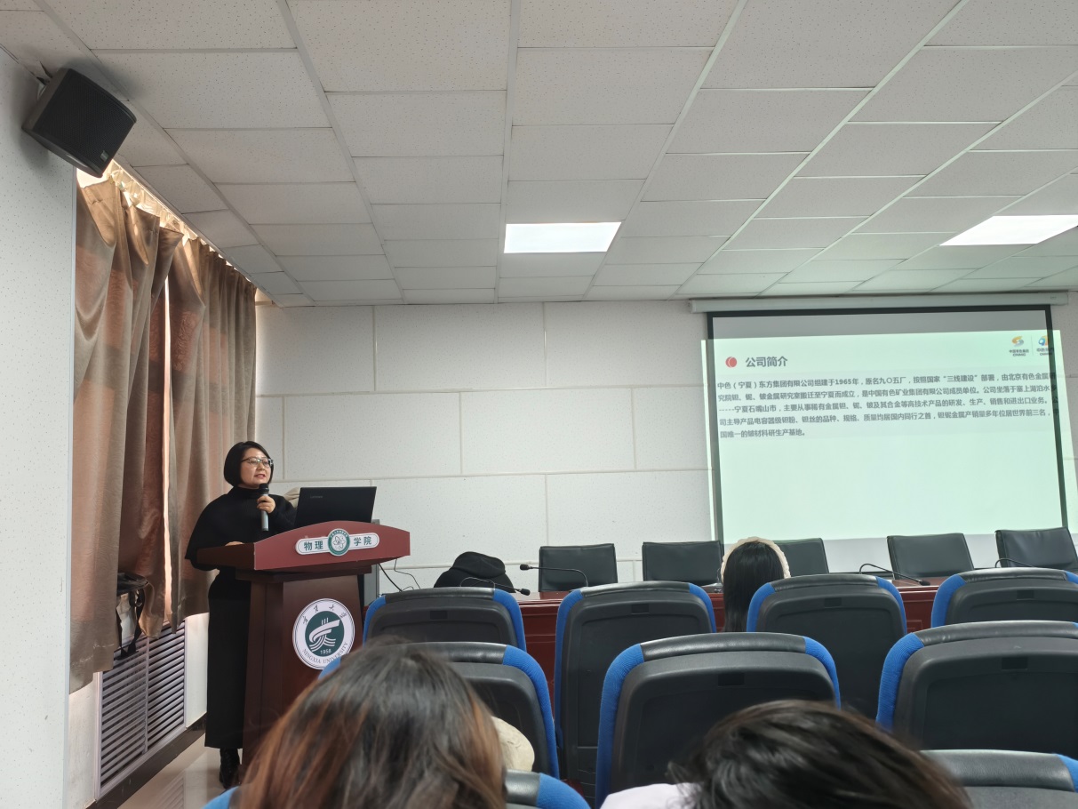 乔锋智能装备股份有限公司西北区人力资源总监莫晶晶、中色(宁夏)东方集团稀有金属特种材料国家重点实验室副主任马晓波、宁夏天凯银科科技有限公司运营总监贺沙沙受邀发言。他们通过宣讲成人网站和需求,分享自身的成长经历、职业发展、能力提升等经验,鼓励同学们要善于在学习和竞赛中锻炼专业核心技能,发扬努力拼搏的精神,为未来赢得更多机会,同时提醒大家既要扎稳脚步、打好基础,又要心怀梦想、合理规划。