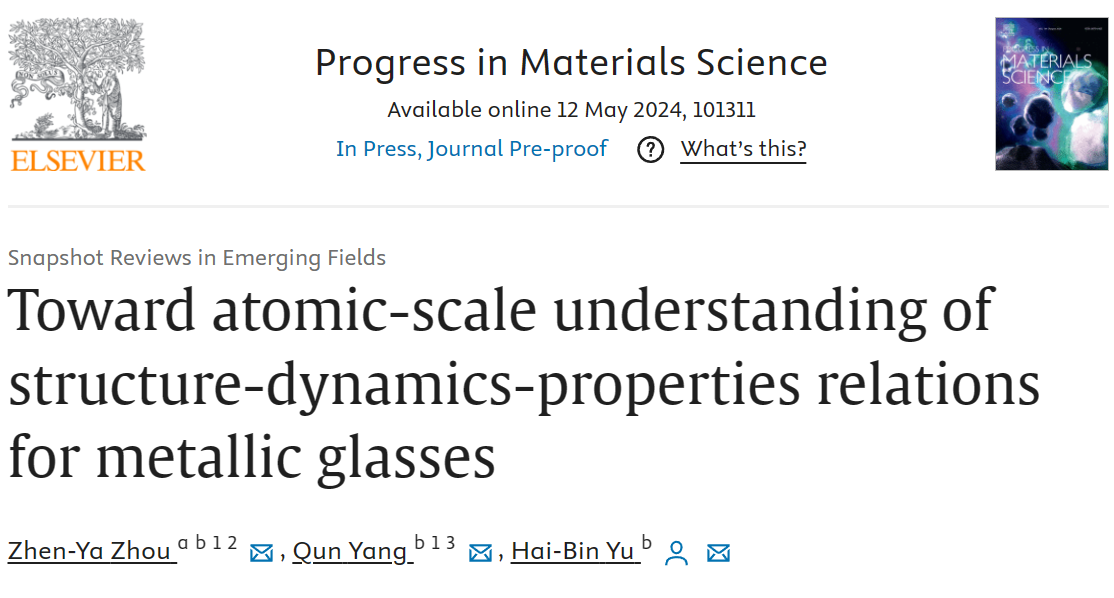 5月12日,成人网站 青年教师周震亚博士与华中科技大学于海滨教授、杨群博士合作,在国际材料科学领域的权威综述期刊《材料科学进展》(Progress in Materials Science)上发表题为《金属玻璃结构-动力学-性能关联的原子尺度理解》(Toward atomic-scale understanding of structure-dynamics-properties relations for metallic glasses)的长篇综述论文。文章详细回顾了近年来在金属玻璃的结构表征、动力学过程的结构特征、结构性能关联等方面所取得的重要研究进展,并针对原子级进展这一主题对金属玻璃的相关研究提出了一系列未来发展方向。周震亚博士和杨群博士为该论文共同第一作者,于海滨教授为唯一通讯作者,成人网站 为论文第一完成单位。该论文是我校首篇以第一单位发表于《Progress in Materials Science》上的学术成果,是我校“双一流”建设工程的一项标志性成果,对提升我校在物理、材料领域和相关科研创新平台的学术影响力具有非常积极的作用。无序和非晶态系统构成了现代科学和技术研究的一个重要研究对象,其中金属玻璃为研究玻璃科学中弛豫和性能等相关问题提供了一个简单而有效的体系。如今,金属玻璃不仅因其独特的力学性能和物理化学特性(高比强、高抗磨损、耐腐蚀、高强度、高韧性等)被广泛应用在航空航天、军工科技、高档电子器材、精密器件、体育器材等领域,并且将来可能会深入到生活的方方面面。得益于实验和计算技术的进步,近几十年来,从原子层面阐明金属玻...