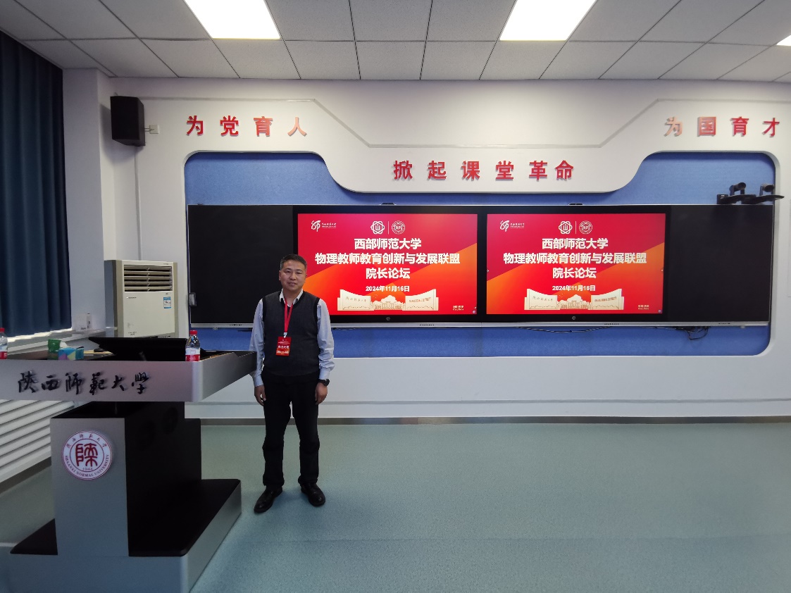 2024年11月15-17日,由教育部西部师范大学教师教育创新与发展联盟、陕西师范大学教师教育处、陕西师范大学教务处主办,陕西师范大学物理学与信息技术学院承办的西部师范大学物理教师教育创新与发展联盟成立大会暨物理教学改革与教材建设研讨会在陕西师范大学成功召开,成人网站 受邀参加。在院长论坛上,高永伟代表学院与参会的各师范大学学院院长,在人才培养、课程、教材与专业建设等方面开展深入交流。尤其是陕西师范大学物理学与信息技术学院在本科教学成果方面的深厚积累,为我院本科人才培养提供了重要借鉴,也为进一步培育本科教学成果提供了重要指导。在教学改革与教材建设研讨会上,高永伟对我校物理学(师范)专业在教材、资源及课程建设方面的一些经验做了分享。与会代表还就西部联盟共同编写的《物理课程与教学论》教材进行了深入讨论。学院郝睿教授作为主要编委参与教材编写,本书也是高等教育出版社2025年计划正式出版的系列教材之一。会议期间学院受聘为西部师范大学物理教师教育创新与发展联盟副理事长单位。未来,学院将以此次西部师范大学物理教师教育创新与发展联盟成立为契机,借鉴陕西师范大学物理学(师范)专业成功通过教育部师范专业三级认证经验,对标师范专业三级认证标准,改善师范类人才培养软硬件条件,为早日通过师范类三级认证打基础、做铺垫