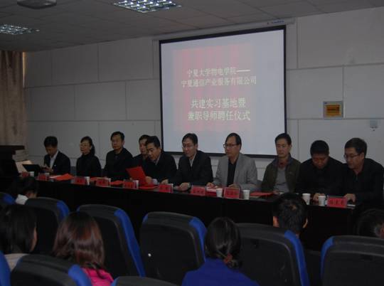2013年11月27日下午,在宁大物电学院217学术报告厅举行成人网站 物理电气信息学院与宁夏通信产业服务有限公司共建实习基地暨聘任专业学位硕士生导师签字仪式,会议由物电学院任克亮副院长主持,参加会议的领导有:物电...